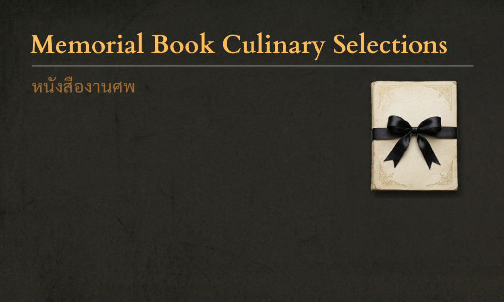 This archive gathers recipes from across her publications, spanning four decades from her 1933 Samrub Raawp Bpee (สำรับรอบปี) to works published after her death in 1964. Each preparation carries her teaching method—tested instructions, structural logic preserved, substitutions provided for those with dietary restrictions. Palace technique made accessible. Court cuisine adapted for household kitchens. The grammar of Siamese cooking recorded by someone who carried it by birthright and gave it away through teaching.