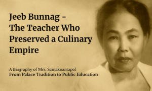 In this series of short articles highlighting their lives and work, we salute and pay homage to the most prominent individuals who influenced and shaped the Siamese culinary arts bpaa ga sin (ปากะศิลป์) of the Rattanakosin Era.
